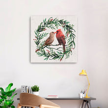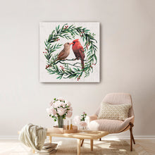 Elevate your space with our timeless and versatile wall art decor, "Christmas Birds on Wreath" by Gia