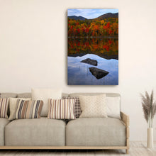 Create a captivating focal point in your space with our eye-catching wall art, "Adirondacks Autumn Mountains Reflection" by Joey Priola