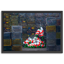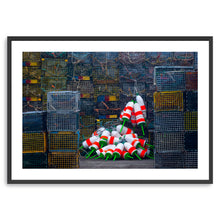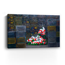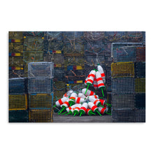 Create a captivating focal point in your space with our eye-catching wall art, "Maine Coast Buoys And Lobster Traps" by Joey Priola