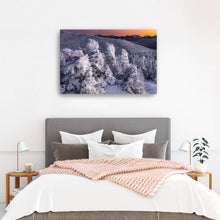 Turn your walls into a canvas of inspiration with our versatile decor art piece, "Cascade Winter Sunset Glow" by Joey Priola