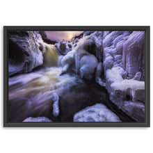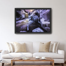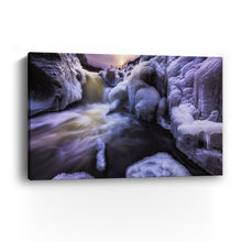 Infuse your walls with elegance and personality using our versatile wall art decor, "Icy Winter Waterfall Flume Falls" by Joey Priola