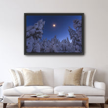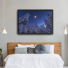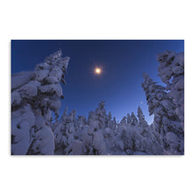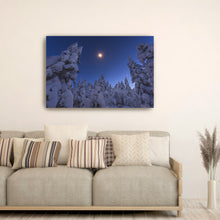 Bring your walls to life with our timeless and captivating wall art piece, "Moonstar and Snowy Tree" by Joey Priola