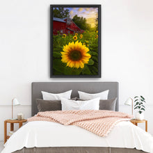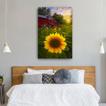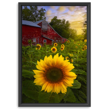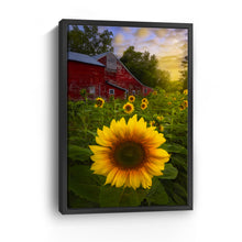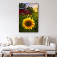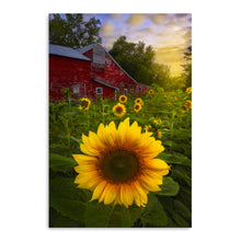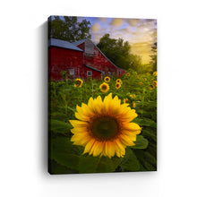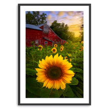 Turn your walls into a canvas of inspiration with our versatile decor art piece, "Sunflowers And Red Barn Sunset" by Joey Priola