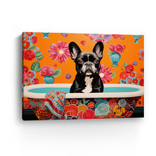 Create an atmosphere that reflects your unique style canvas art print, "The Frenchie Soak" by Jay Ward